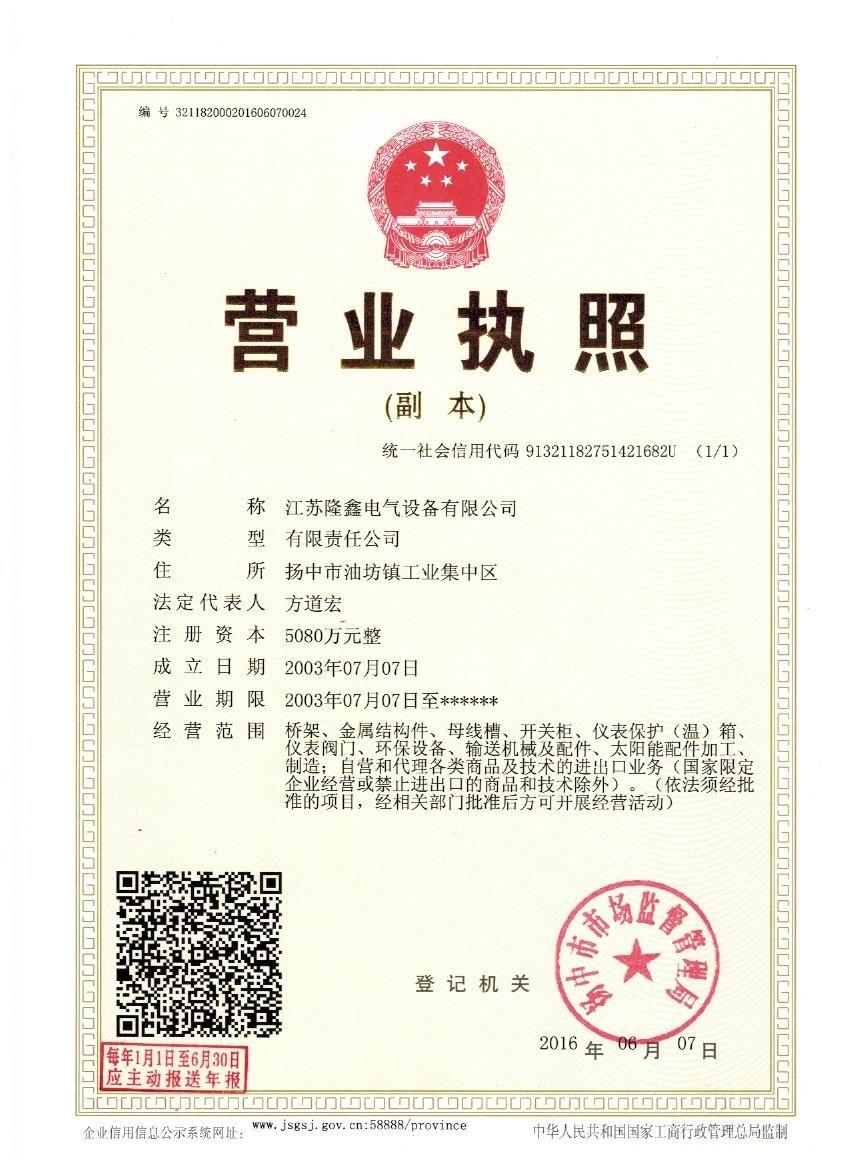 江蘇隆鑫電氣設(shè)備有限公司(原揚(yáng)中市隆鑫電器設(shè)備有限公司)位于風(fēng)景秀麗的江南古城 ---- 鎮(zhèn)江東部揚(yáng)子江畔,水陸交通便利。 本公司是中石化網(wǎng)絡(luò)成員企業(yè),是揚(yáng)中橋架企業(yè),工業(yè)管道閥門、儀表管配件、母線槽、匯線橋架、玻璃鋼制品的專業(yè)生產(chǎn)廠家。 我公司一貫以經(jīng)營以管理為保證、以科技進(jìn)步為動(dòng)力,使產(chǎn)品的市場占有率不斷提高,公司正持續(xù)、穩(wěn)步、健康地向前發(fā)展,秉循“創(chuàng)造完美、服務(wù)用戶、奉獻(xiàn)社會”的經(jīng)營觀念,本公司生產(chǎn)的儀表管件及閥門系列產(chǎn)品、母線槽、電纜橋架幾乎覆蓋全國31個(gè)省、市、自治區(qū)的化工、冶金、交通、輕...